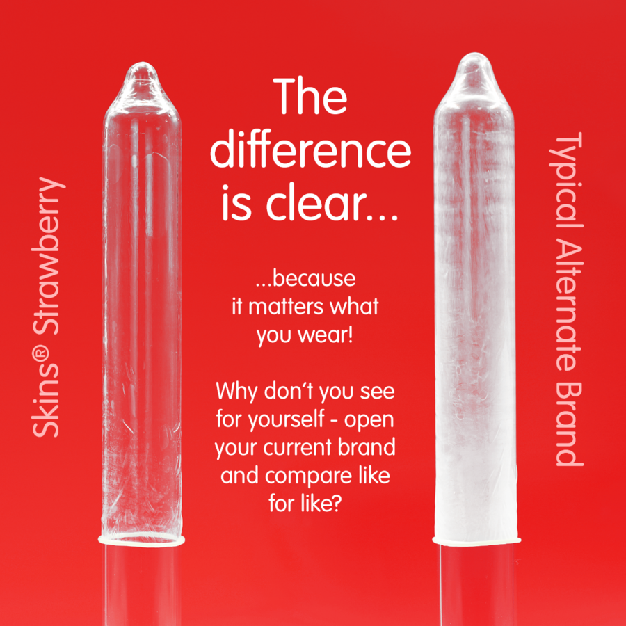 Introducing our new Strawberry 8-pack, featuring a sleek, ready-to-use design and up to 33% more condoms than the market leader. Add a classic fruity flavor to your product range with Skins Strawberry condoms. Made with premium natural latex for a sheer, natural feel, these condoms are designed to provide a second-skin feel without compromising strength or safety. Ideal for retailers looking to offer a popular and trusted flavor option for added intimacy and protection.